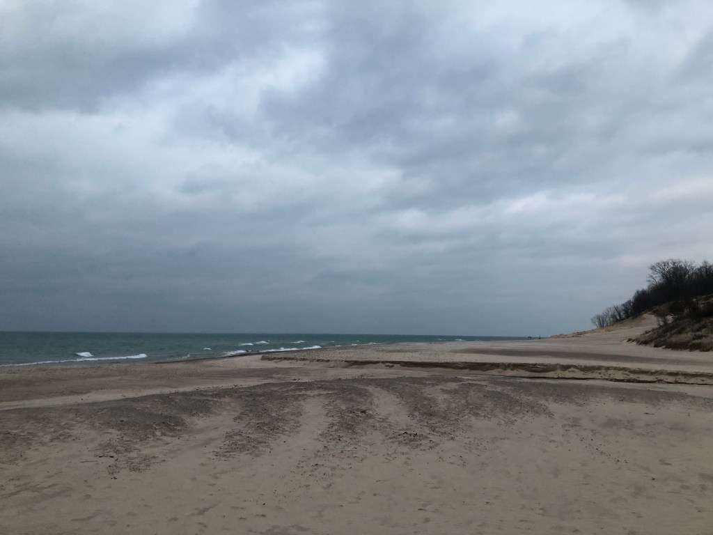 Toujours depuis l’Indiana, j’ai pu admirer le Lac Michigan au crépuscule. Aller voir le lac Michigan était une décision spontanée prise sur une aire d’autoroute car « ça n’est pas loin« . Pourtant, et je le sais, le « pas loin » sur une carte américaine est toujours très trompeur. A titre d’exemple, la France et le Texas font à peu de choses près la même taille. Lire une carte américaine doit donc toujours se faire avec précaution. Ce n’était sûrement pas la décision la plus judicieuse car le détour a rallongé mon étape de plusieurs heures mais la beauté de la découverte justifiait beaucoup.