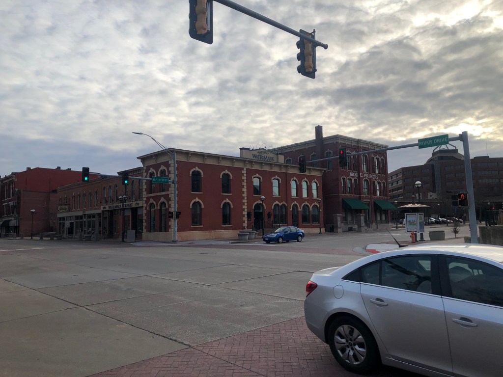 Continuant ma route dans l’Illinois, je me suis arrêtée à Moline, une ville dont le nom vient originellement du français « moulin » dans la « ceinture de rouille » (Rust belt) américaine. Au petit matin, j’ai pris mon petit-déjeuner face au Mississippi, sur lequel il y avait des canards mais point de crocodiles.