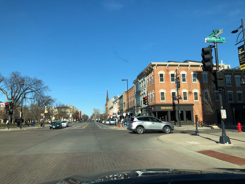 Puis je suis allée me promener à Iowa City pour découvrir une ville dynamique. C’est aussi à Iowa City que j’ai dégusté un steak frit de poulet (chicken fried steak), qui comme son nom ne l’indique pas, consiste en une sorte de Schnitzel de boeuf. Cette recette est un apport des immigrants d’Europe de l’Est au XIXème siècle. Dans le Midwest, le chicken fried steak se consomme avec des galettes de pommes de terre, une omelette et du pain. De la confiture était aussi incluse dans le package mais j’ai choisi de superbement en ignorer la présence.