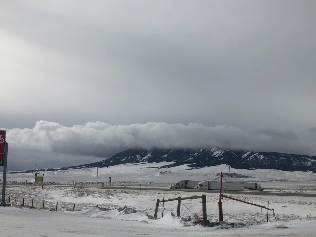Enfin, la dernière étape du trajet a été le Wyoming et ses paysages enneigés tout droit tirés d’un conte. J’y ai eu un aperçu de la rudesse des hivers dans l’Ouest américain : il neigeait, les rafales de vent atteignait des pointes de vitesse à 65 km/h et même sur l’I-80, la chaussée était recouverte de verglas (« glace noire », comme on dit en Amérique du Nord) et d’amas de neige.