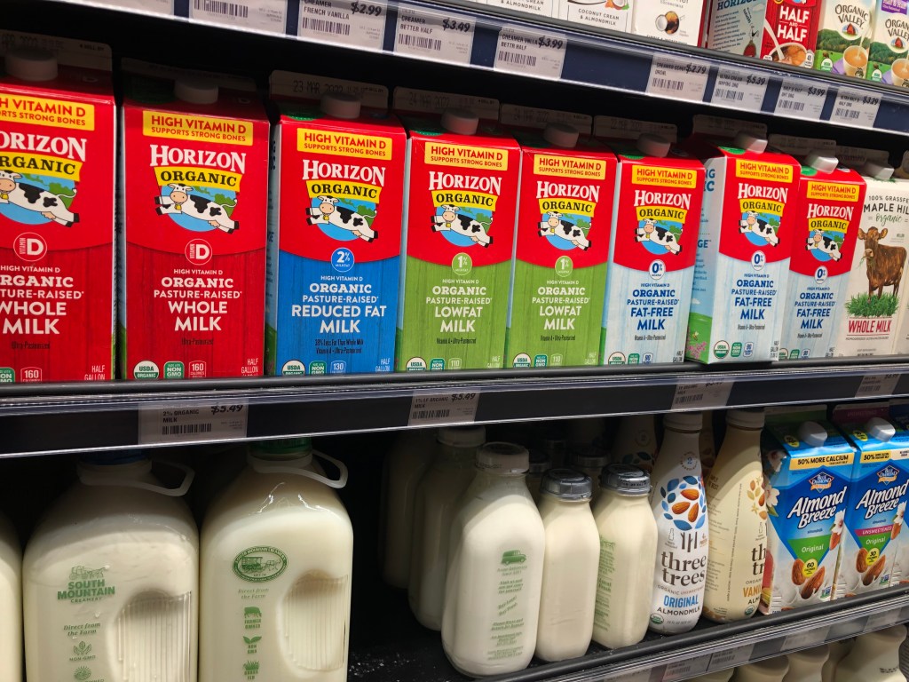 Bref, le lait et les oeufs aux Etats-Unis.