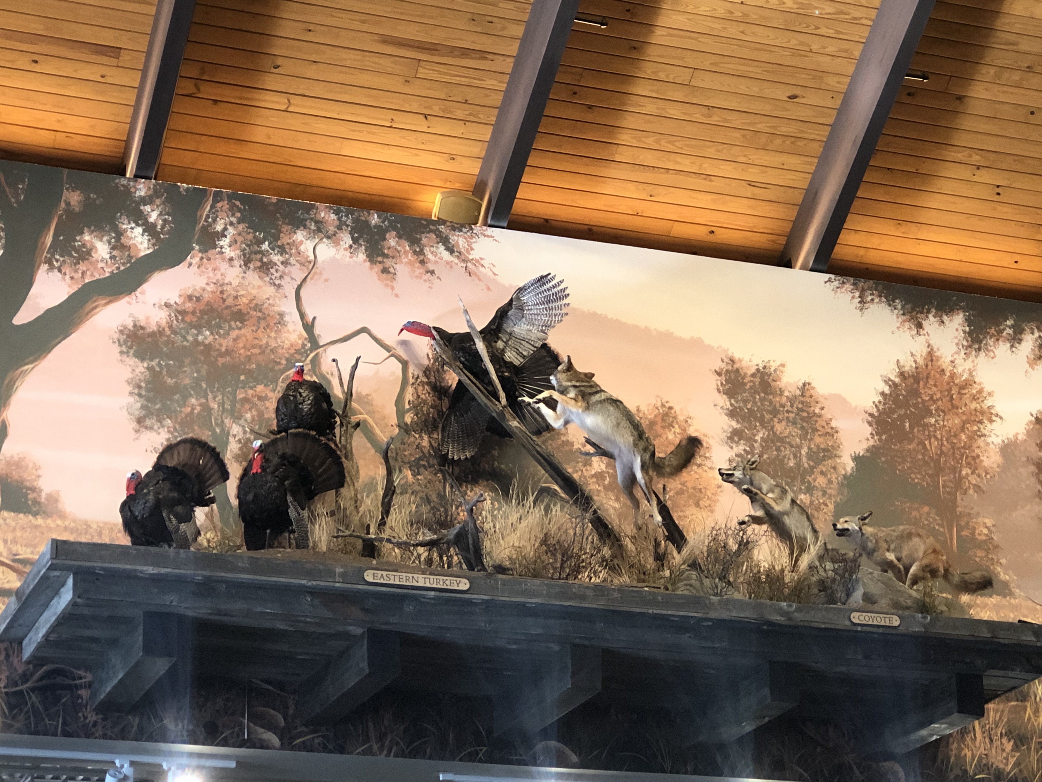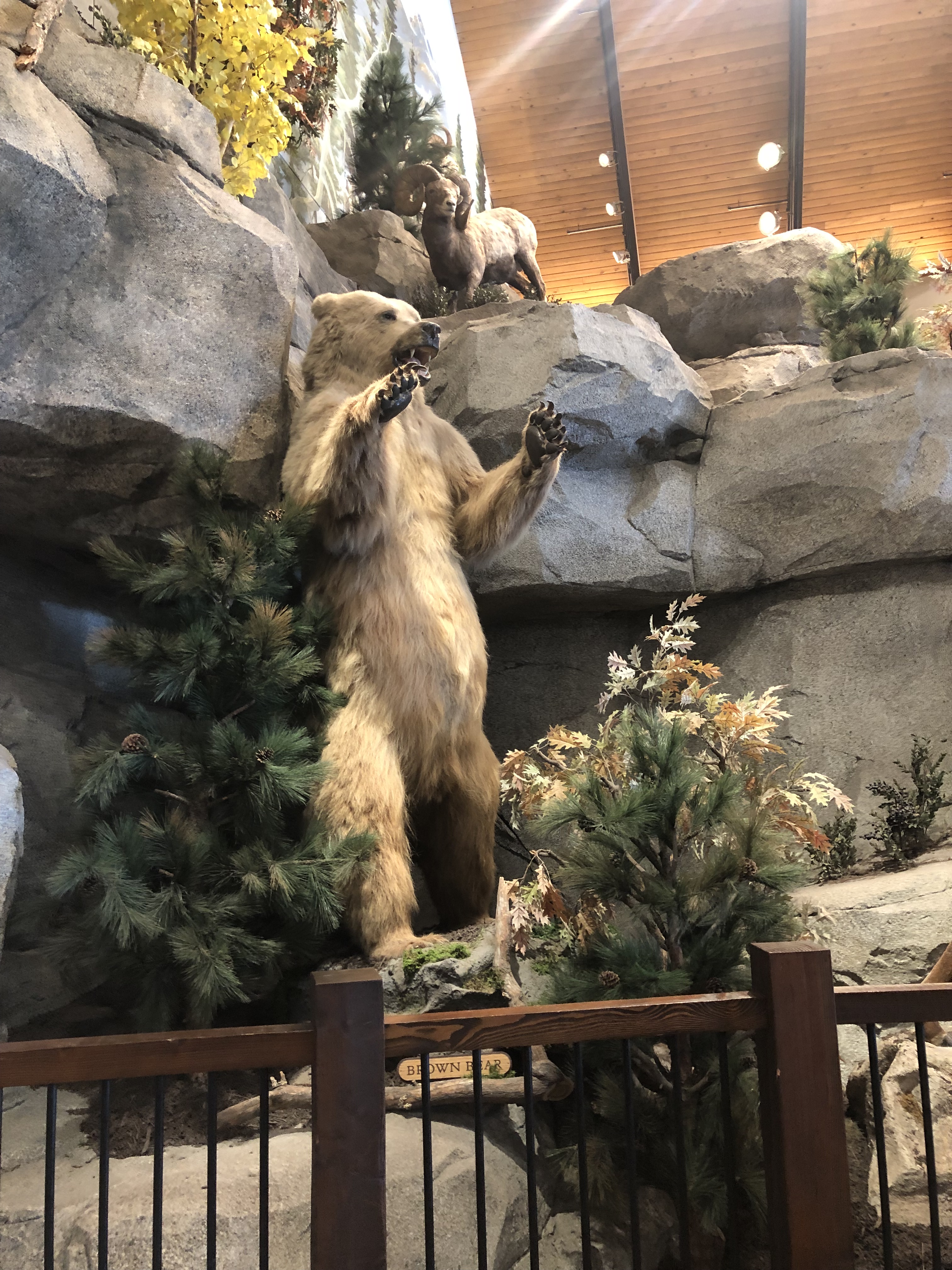 C’est à ce moment que je me suis aperçue que le magasin n’est pas tout à fait comme en Europe. En outre, l’expérience a été renforcée par le rapport différent que les Américains ont avec la nature. La décoration consiste ainsi essentiellement en des animaux empaillés – ou des reproductions très réalistes d’animaux.