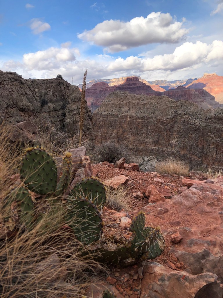 Le Grand Canyon génère son micro-climat et la météo change de manière radicale en fonction du lieu où on se trouve dans le canyon. Au soleil, les températures sont élevées ; à l’ombre, le ressenti est polaire. Les journées chaudes et les nuits glaciales alternent, nécessitant une adaptation fréquente. L’environnement est traître pour le corps humain : ne pas boire assez d’eau conduit à la déshydratation, trop en boire à une hyponatrémie. Seul face à l’immensité de la nature, là où l’auto-suffisance totale est une nécessité, il est aisé de s’imaginer la dureté de la vie et le courage pour les populations qui découvraient et exploraient cette terre inconnue. Seul se transmet et reste à travers le temps le mouvement immuable de la marche, mouvement répété générations après générations, siècles après siècles, millénaires après millénaires, avec comme seul témoin muet les paysages majestueux et imposants. En étant attentif, le randonneur peut observer des pétroglyphes, traces fragiles de la présence de ces humains qui, il y a des siècles, ont vu les mêmes paysages et affronté la même immensité.
