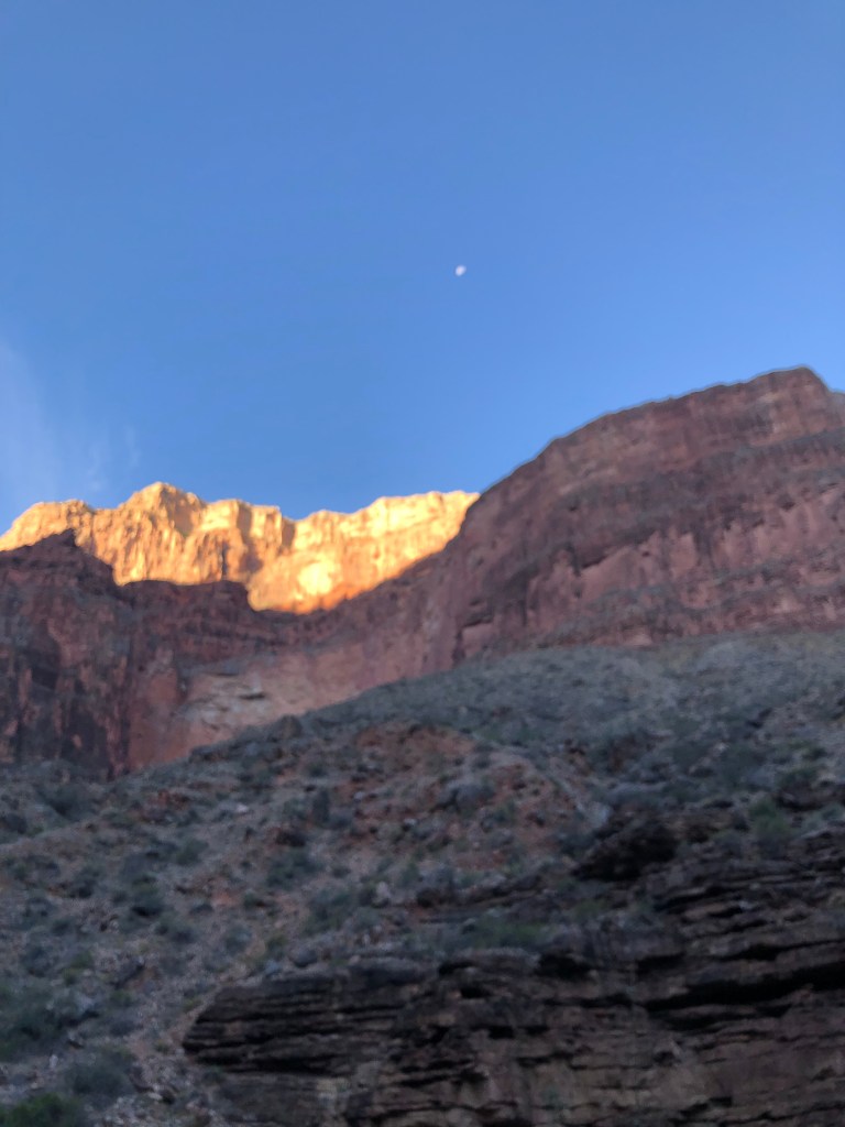 Charles Tomlinson, un poète britannique, décrivait les déserts d’Arizona comme l’endroit où « la steppe et l’espace s’étendent« . Ces mots deviennent une réalité quotidienne pour le randonneur. L’obscurité donne encore davantage de relief à ce vers de Tomlinson. Se mouvoir de nuit à travers le canyon revient à s’orienter entre deux éléments qui apparaissent comme diamétralement opposés. Au plus profond de la nuit, les falaises du canyon se muent en masses sombres immobiles se dressant semblables à des remparts. En levant les yeux, le randonneur sera saisi par le contraste de ces falaises avec la voie lactée qui invite à l’évasion. Avant l’aube, la marche est légère, guidée par les constellations célestes. Les étoiles, celles-ci qui ont orienté les multiples générations d’explorateurs, continuent d’aider à tracer et distinguer les sentiers à travers la steppe.
