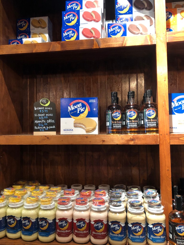 De moonshine à moon pie, il n’y a qu’un pas… On trouve donc au Tennessee la fameuse moon pie, connue des Américains depuis 1917, qui est produite dans le Tennessee. Les moon pies sont en fait deux cookies (tout du moins dans sa version originale) liés par de la guimauve, le tout étant enrobé d’un glaçage. Le moon pie était initialement un repas de chantier qui s’est diffusé dans toute la société. Madeleine de Proust de la société américaine, la société qui produit les moon pies a même lancé un concours à l’occasion du centenaire de la marque. Les participants devaient raconter leurs prmiers souvenirs avec les moon pies. Un des grands prix consistait en l’approvisionnement en moon pies pendant cent ans.