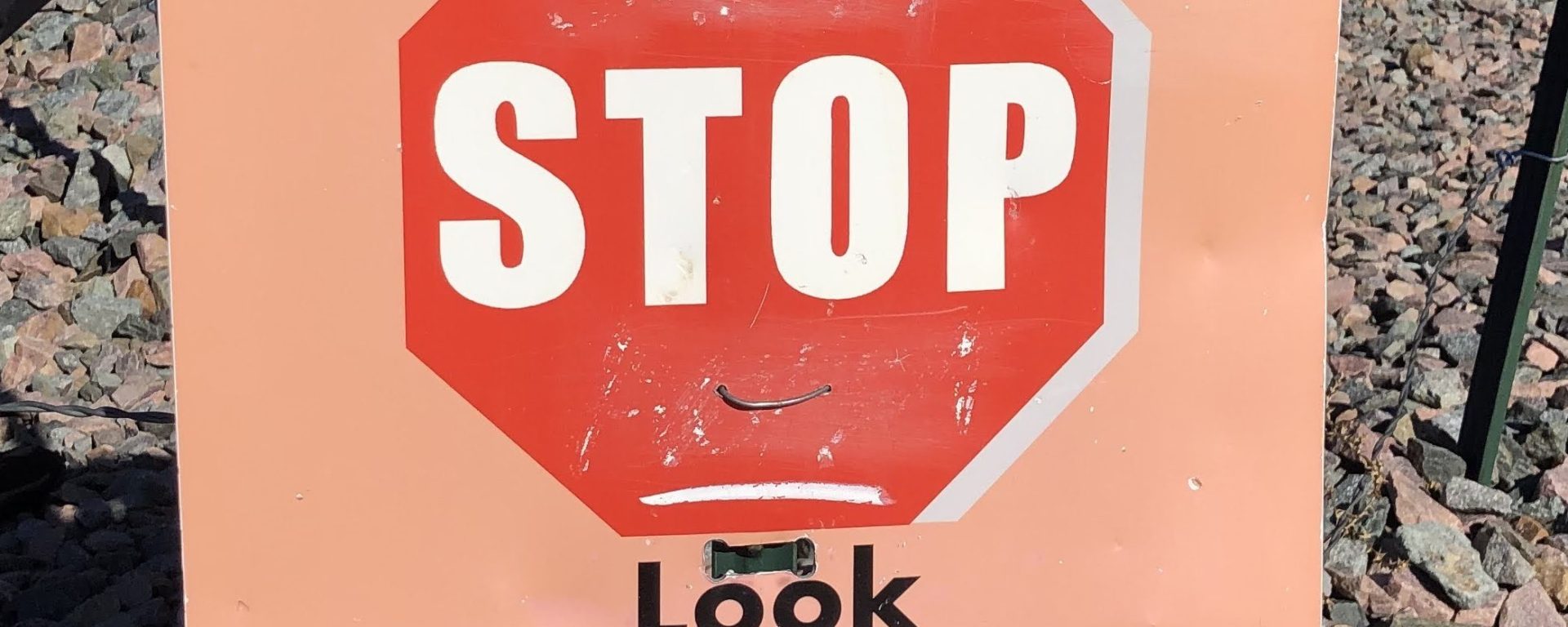 « Stop. Regardez. Ecoutez. Ne traversez pas si un train approche. Si libre, traversez rapidement. »