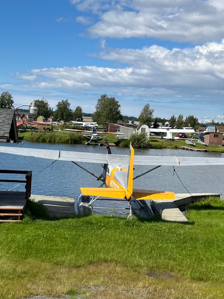 Les hydravions se trouvent principalement autour du Lac Hood (Lake Hood Seaplane Base) qui, avec 190 décollages par jour, compte comme la base d’hydravions la plus active du monde. En hiver, le lac gelé est utilisé comme piste pour les avions à skis. Un avion de brousse prêt à voler coûte entre 20 et 40 000 dollars. De ce fait, il m’a été dit que certaines personnes décident de construire leur avion. Il se dit aussi que posséder son avion est un excellent moyen de faciliter l’obtention d’une license de pilotage. Vous savez maintenant ce qu’il vous reste à faire en arrivant à Anchorage : vous inscrire sur la liste des élans accidentés et construire votre avion.